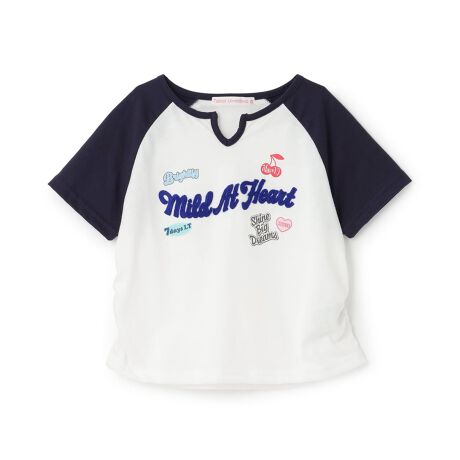 可愛い配色の袖が目を引く今っぽいラグランデザインのTシャツです。脇のシャーリングでクシュっとしたシルエットになっており、程よくギャルっぽい雰囲気が楽しめます。スリット入りの衿ぐりでさりげなくおしゃれ見えするのもポイント。立体的なサガラ刺しゅうのメインロゴで、カジュアルな中にも存在感をプラスしています。刺しゅうの裏に「あて布」はございません。Lovetoxic直営店でのお取り扱いはございません。