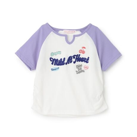 可愛い配色の袖が目を引く今っぽいラグランデザインのTシャツです。脇のシャーリングでクシュっとしたシルエットになっており、程よくギャルっぽい雰囲気が楽しめます。スリット入りの衿ぐりでさりげなくおしゃれ見えするのもポイント。立体的なサガラ刺しゅうのメインロゴで、カジュアルな中にも存在感をプラスしています。刺しゅうの裏に「あて布」はございません。Lovetoxic直営店でのお取り扱いはございません。