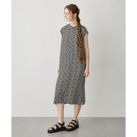 バンドカラープリントワンピース