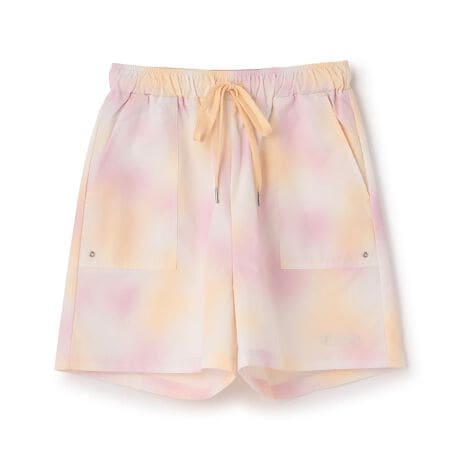 タイダイ柄と無地のアソートデザインになったショートパンツです。ウエストはヒモで調節可能。ポケットが4つついているのも便利なポイントです。暑い時期のレジャーまで長く使えるアイテム。裾にはピンクラテのロゴ刺しゅうを入れました。