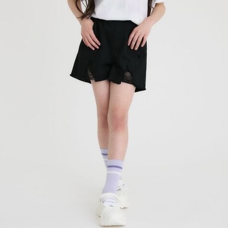 ダメージデザインでこなれ見えするあたたかい時期にぴったりな定番のショートパンツです。はき回しやすいベーシックな丈感。ウエストはゴム仕様なのでお着替えもラクラクです。