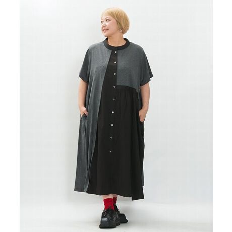 1枚でコーデが完成する、異素材ミックスのAラインワンピース。