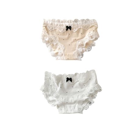 ウエストまわりから脚まわりまでレースをあしらい、上品な印象に。中央に添えたリボンがさりげないポイントとなり、シンプルながらも程よい華やかさを演出します。