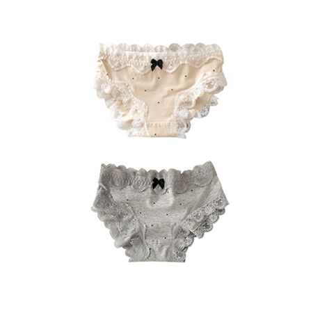 ウエストまわりから脚まわりまでレースをあしらい、上品な印象に。中央に添えたリボンがさりげないポイントとなり、シンプルながらも程よい華やかさを演出します。