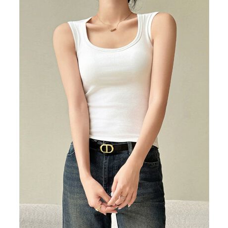 インナーでも一枚でも着回せるノンワイヤーのカップ付きタンクトップ。