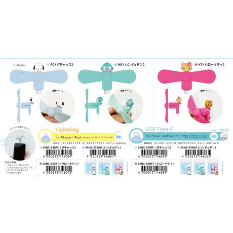 サンリキャラクターズ コネクター付きミニクールファン USB Type-C ハローキティ