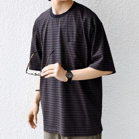 絶妙な配色とピッチのボーダーデザインが◎大人のためのポケットボーダーTシャツ
