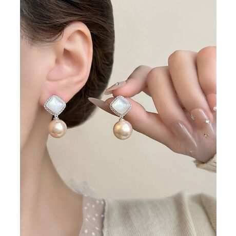 繊細な輝きを放つスクエアビジューと、ニュアンスのあるカラーパールの組み合わせが、圧倒的な気品を放つスウィングピアス