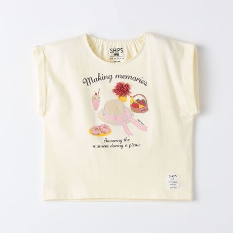スイーツやフルーツをプリントやパッチワーク刺繍で表現した、可愛らしいTシャツ。