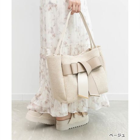 大人気のリボントートバッグから、シーズンムード高まるナチュラルなラフィア風デザインが新登場。