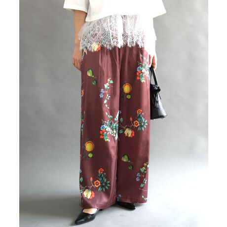 自然の優しさを感じさせるボタニカル柄が目を惹くワイドパンツ。