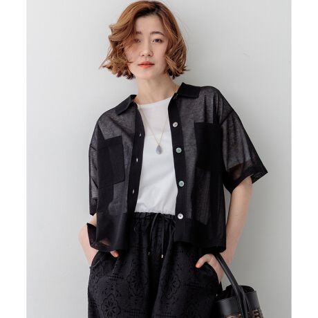 トレンドの透け感を上品に楽しむポロニット