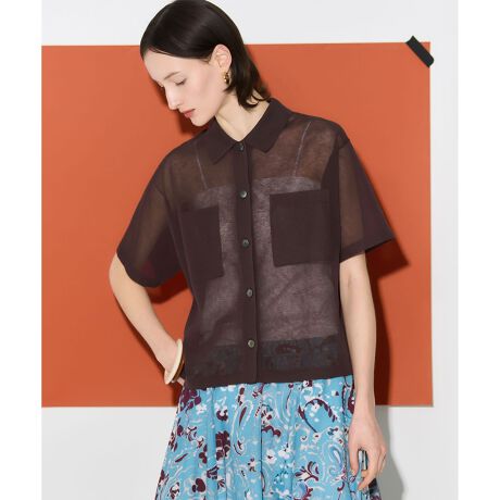 トレンドの透け感を上品に楽しむポロニット