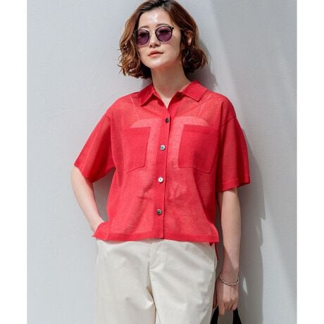 トレンドの透け感を上品に楽しむポロニット