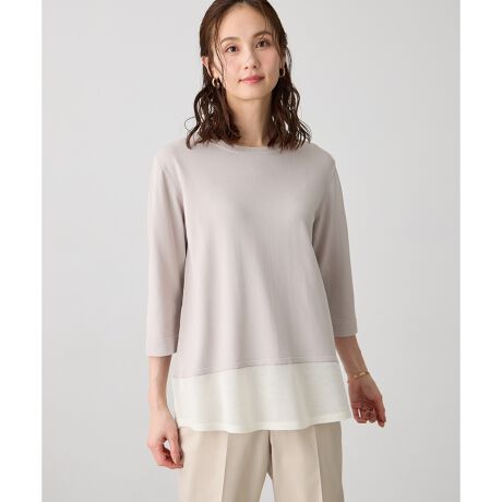 裾をシアーな編地に切り替えた、抜け感のあるニットチュニック。