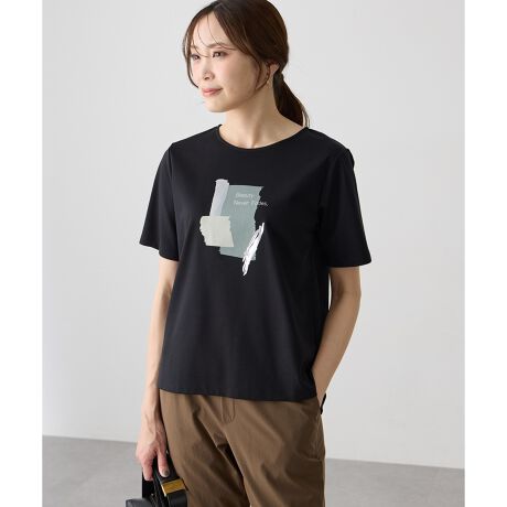 [型番:351690]機能もデザインも叶うロゴT人気のグラフィックロゴTをアップデートした、今季らしい一枚。接触冷感とUVカット機能付きで、暑い季節も快適に着られるのが嬉しいポイントです。ロゴには「色褪せない美しさ」という意味が込められています。一枚でさらっと着ても程よく存在感があり、シャツやカーディガンのインナーとしても使いやすいデザインです。