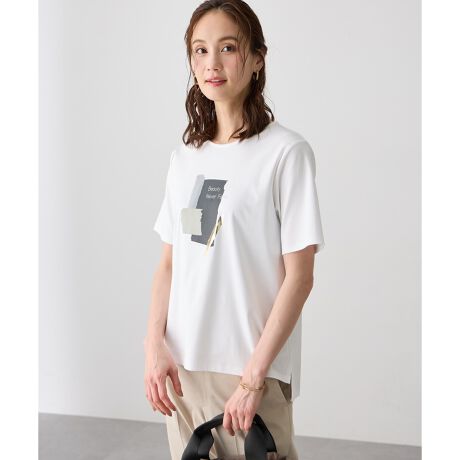 [型番:351690]機能もデザインも叶うロゴT人気のグラフィックロゴTをアップデートした、今季らしい一枚。接触冷感とUVカット機能付きで、暑い季節も快適に着られるのが嬉しいポイントです。ロゴには「色褪せない美しさ」という意味が込められています。一枚でさらっと着ても程よく存在感があり、シャツやカーディガンのインナーとしても使いやすいデザインです。