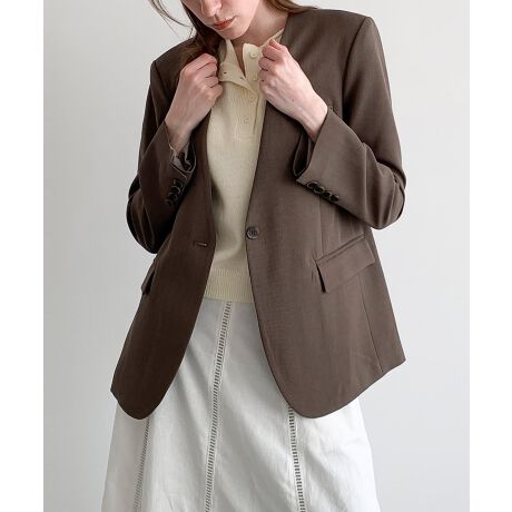 無駄を削ぎ落としたミニマルなノーカラージャケット。