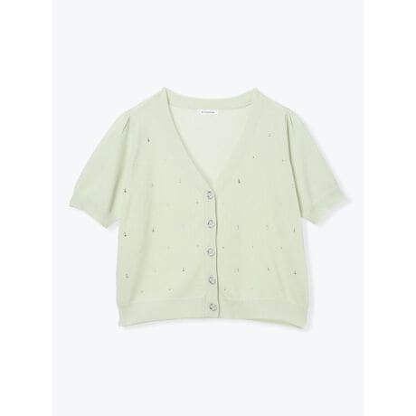 ビジューが散りばめられたデザインが甘さをプラスするカーディガン