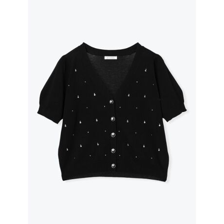 ビジューが散りばめられたデザインが甘さをプラスするカーディガン