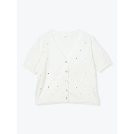ビジューが散りばめられたデザインが甘さをプラスするカーディガン