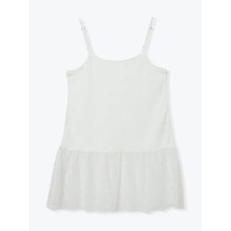 [型番:26550738536]やわらかなテレコ素材に裾のレース切り替えがポイントのキャミソール。シンプルながら裾のデザインでさりげなく華やかさをプラスします。プリントTやシャツなどのカジュアルアイテムの上からレイヤードするのもおすすめです。キャミソールなのでインナーを変えるだけでシーズンレスでお使いいただけるのもポイント。