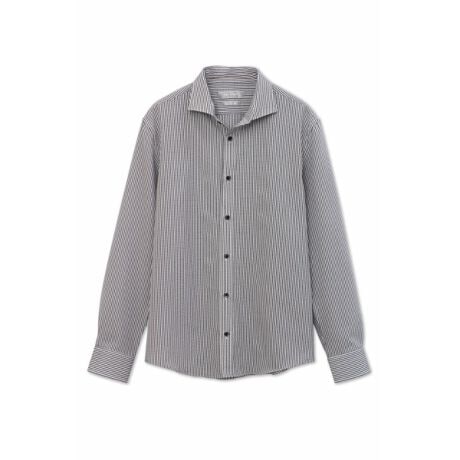 [型番:1700557][DESIGN] コンフォートな2WAYシアサッカー生地を使用したカッタウェイシャツ。軽量でさらりとした風合いに加え、縦横に伸びる高いストレッチ性を備え、スマートな見た目と快適な着心地を両立しています。 [TEXTILE] 特殊メッシュ組織で仕上げたシアサッカー素材。軽量かつ優れた通気性と吸水速乾性を持ち、縦横ストレッチによるストレスフリーな着用感を実現した高機能ファブリックです。