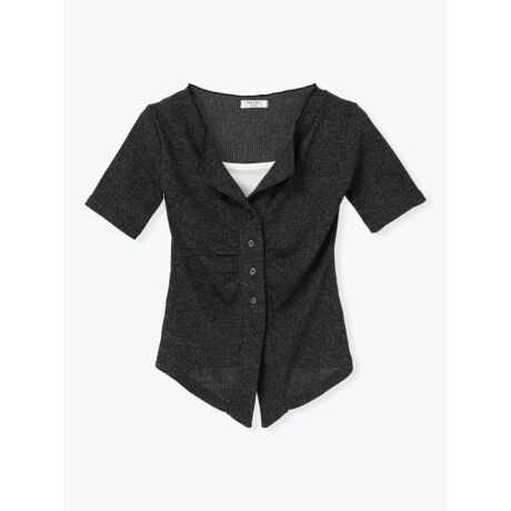 [型番:26560784026]伸縮性のあるリブ素材で体にほどよく沿うフェイクカーディガン。フロントボタンと開きのあるネックラインで、すっきりとした印象に仕上がります。タックパンツを穿いてコンパクトにまとめたり、デニムでラフに崩すバランスもおすすめです。