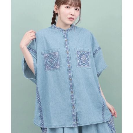 メキシコタイルをモチーフにしたオリジナル柄を、贅沢な刺繍で表現したデニムシャツ。