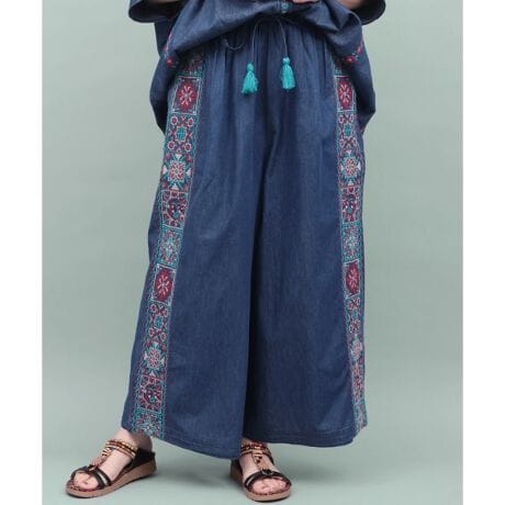 メキシコタイルをモチーフにしたオリジナル柄を贅沢に刺繍で表現したワイドパンツ。