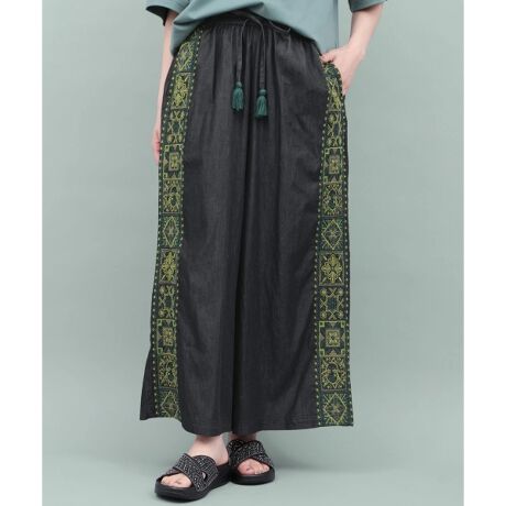 メキシコタイルをモチーフにしたオリジナル柄を贅沢に刺繍で表現したワイドパンツ。