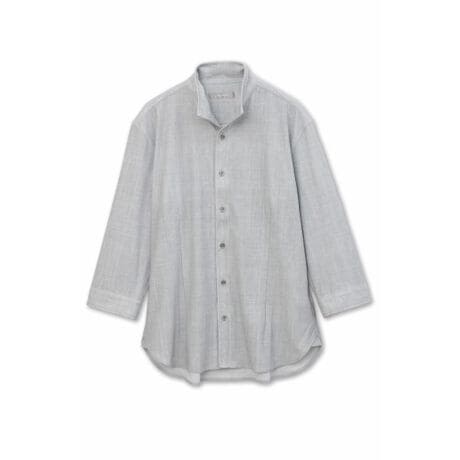 メランジプリントを施した4WAYトリコット素材を使用した、オブロングカラーの7分袖シャツ。通気性に優れた軽やかな風合いと、さらりとした肌触り、全方向に伸びるストレッチ性により快適な着心地を実現しています。形状保持芯を入れた衿はアレンジが自在で、スタイリングにさりげない表情をプラス。羽織りとしてもインナーとしても活躍する汎用性の高い一枚です。