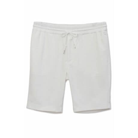 細かなうねりが走る“ウェーブ調”の表面感が特徴。無地でも光の当たり方で陰影が生まれ、ショーツでものっぺり見えにくいのがポイントです。ほどよいハリ感があるためシルエットが崩れにくく、カジュアルになりがちな夏の装いでも上品さをキープできます。