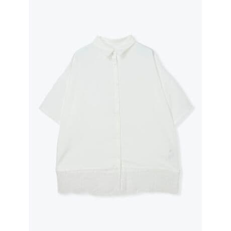 [型番:26550738213]無地ベースに裾のレースデザインが映えるゆるシャツ。シンプルながらも裾のアクセントで、着こなしにさりげない変化をつけてくれます。羽織りとしてもブラウスとしても使えるため、コーディネートの幅が広がる点が魅力です。春夏にぴったりのアイテムです。