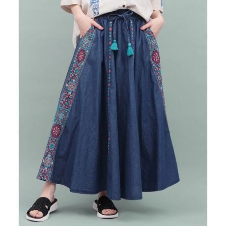 メキシコタイルをモチーフにしたオリジナル柄を、刺繍で贅沢に表現したフレアスカート。