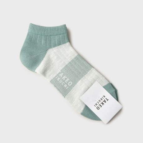 異素材のコントラストが楽しめるスラブ糸とドラロン綿の素材切り替えボーダーショートソックス。