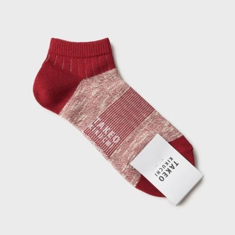 異素材のコントラストが楽しめるスラブ糸とドラロン綿の素材切り替えボーダーショートソックス。