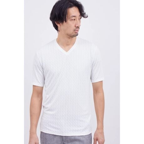 タイトシルエットでラインをきれいに見せつつ、首元はVネックで抜けを作る万能タイプ。開きは程よく設計されているため上品に見え、1枚で着てもサマになります。ジャケットやシャツのインナーに入れても首回りがもたつかず、レイヤードでもバランスが取りやすいのが魅力。シンプルなのに“きちんと見え”が叶う、着回し力の高い一枚です。