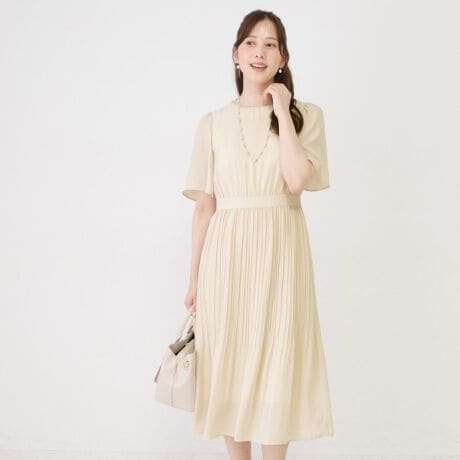 【手洗い可】プリーツ加工フレアワンピース