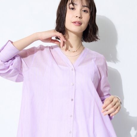 インナーにキャミソールを合わせて一枚で軽やかに、ボタンを外して羽織りとしても活躍するブラウスです。
