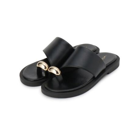 ゴールドモチーフが足元に程よいアクセントを添えるトングフラットサンダル。