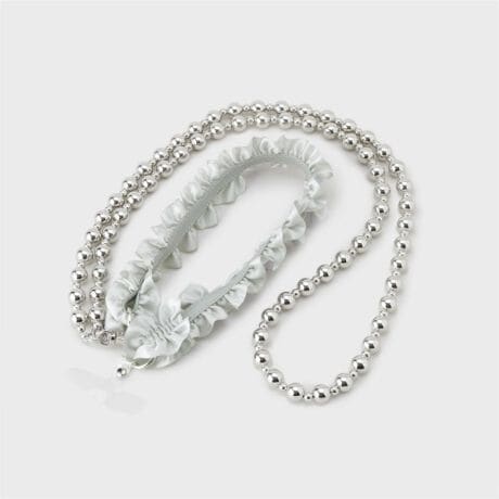 パール風ビーズは軽やかに艶めき、メタルはクリーンな光をプラス。