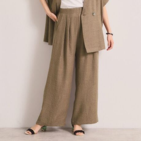 フロントのダブルタックが立体的なシルエットをつくり、気になるお腹周りを自然にカバー。