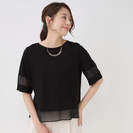 ソフトな風合いが特徴のフライスジャージ素材とシアーなシフォンを使い合わせました。