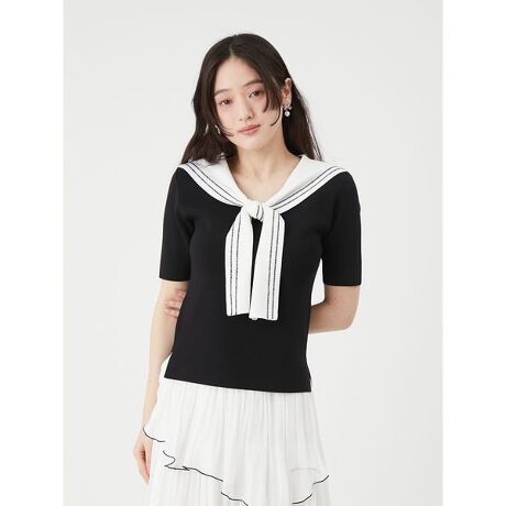 <b>【マリンな刺繍が目を惹くセーラーカラー。配色で魅せる大人の遊び心溢れるサマーニット】</b>