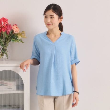 【UVケア/接触冷感/吸水速乾/洗濯機OK】柔らかリネンライクスキッパーブラウス