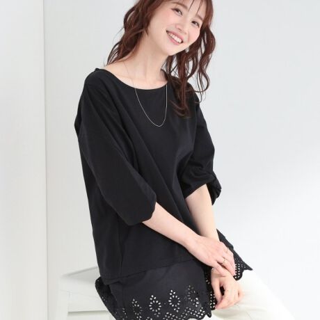 【洗濯機可ひんやりS-LL】裾レース切り替え ねじりお袖チュニック