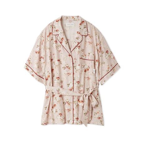 <b>ストライプに色とりどりの花が咲くなめらかな開襟シャツ</b>