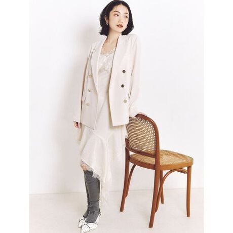 トレンド感のあるランジェリーライクに仕立てたサテンキャミトップスが登場。胸元や裾にテープレースをふんだんに使用しドレッシーに仕上げました。シボ感を加えたとろみサテン生地を使用し、普段使いにもしやすいデザインです。ふんわり柔らかな生地が、裾に向かって流れるようなラインを描きます。膝下の裾のモードなアシメデザインが、歩くと軽やかに揺れて華やかな印象に。オーバーサイズジャケット(SWFJ261134)や、デニムパンツ(SWFP261223)合わせがおすすめです。
