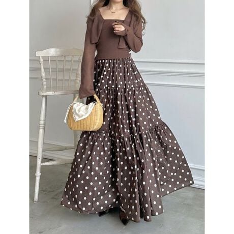シアーカーディガンとニットベアワンピースがセットになったアイテムです。